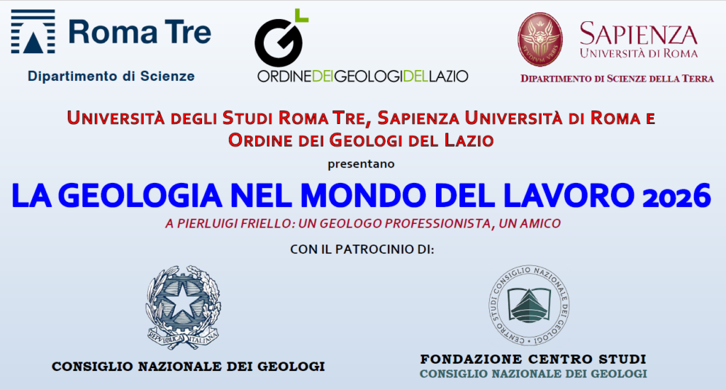 L’Ordine dei Geologi del Lazio, in collaborazione con l’Università degli Studi Roma Tre e la Sapienza Università di Roma, con il patrocinio del Consiglio Nazionale dei Geologi e della Fondazione Centro Studi del CNG, presenta il ciclo di seminari 2026: